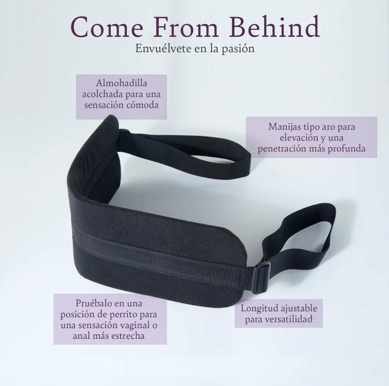 Esta correa de posición cuenta con una almohadilla acolchada, dos asas en bucle y una longitud ajustable para que pueda adaptarse a casi cualquier persona. Especialmente diseñado para mejorar el estilo perrito, Come From Behind permite ángulos más placenteros, una penetración más profunda y mejores orgasmos.