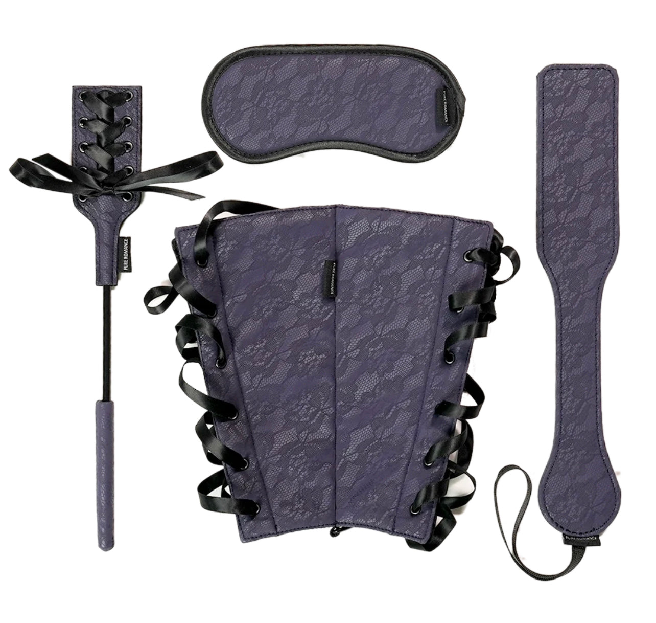 Adéntrate en el mundo de las perversiones con un juego de cuatro partes de lujo que incluye una venda para los ojos, una paleta, un fusta y reposabrazos. La paleta y la fusta llevan a la maestría los dolorosos experimentos de placer, la venda de los ojos quita la vista a la sensación del foco, y las restricciones de los brazos se unen para la sumisión sensual. Los acentos de satén y el material afelpado con estampado de encaje añaden un toque de suavidad para contrastar la audaz intensidad del juego BDSM. Pruebe cada accesorio uno por uno y conviértalo en un lento descenso hacia todo lo erótico, o combine partes del conjunto para una satisfacción multifacética que supere las expectativas una y otra vez... caracteristicas Restricciones: ● Ata los antebrazos por delante o por detrás de la espalda para experimentos eróticos y sumisos. ● Materiales: poliéster, poliuretano, polietileno, hierro sin níquel ● Longitud: 8,75 pulg./22,2 cm ● Circunferencia de la muñeca: ≤ 11,8 pulg./29,9 cm ● Circunferencia del antebrazo: ≤ 14,9 pulg./37,8 cm Venda: ● Elimina el sentido de la vista para realzar todos los demás sentidos para que cada toque emocione ● Materiales: poliéster, polietileno, poliuretano, elástico, spandex ● Longitud: 7 pulg./17,8 cm Paleta: ● Imparte una bofetada satisfactoria con un aguijón sexy que es perfecto para las áreas de los glúteos y los muslos ● Materiales: poliuretano, poliéster, fibra de vidrio, nylon, spandex ● Longitud: 12,75 pulg./32,4 cm Cultivo: ● Bromea con una caricia de cintas encorsetadas o deja picaduras calientes que tu pareja suplicará… ● Materiales: poliuretano, poliéster, ABS, spandex, hierro sin níquel, vinilo ● Longitud: 12,5 pulg./31,8 cm Direcciones Restricciones: Deslice los antebrazos a través de las aberturas y use lazos de raso para cerrar cada lado. Ojos vendados: Cubra los ojos y ajuste las correas según sea necesario. La paleta y el cultivo se pueden usar según se desee. Consejo(s): Hable sobre los niveles de comodidad con su pareja antes de usarlo. Suspenda su uso inmediatamente si se produce una molestia o dolor no deseado. Los reposabrazos no se deben utilizar durante largos períodos de tiempo. Utilizar siempre con responsabilidad. Cuidado: Limpiar con un paño húmedo y/o toallitas con alcohol si es necesario. Secar al aire solamente. No lavable a máquina.